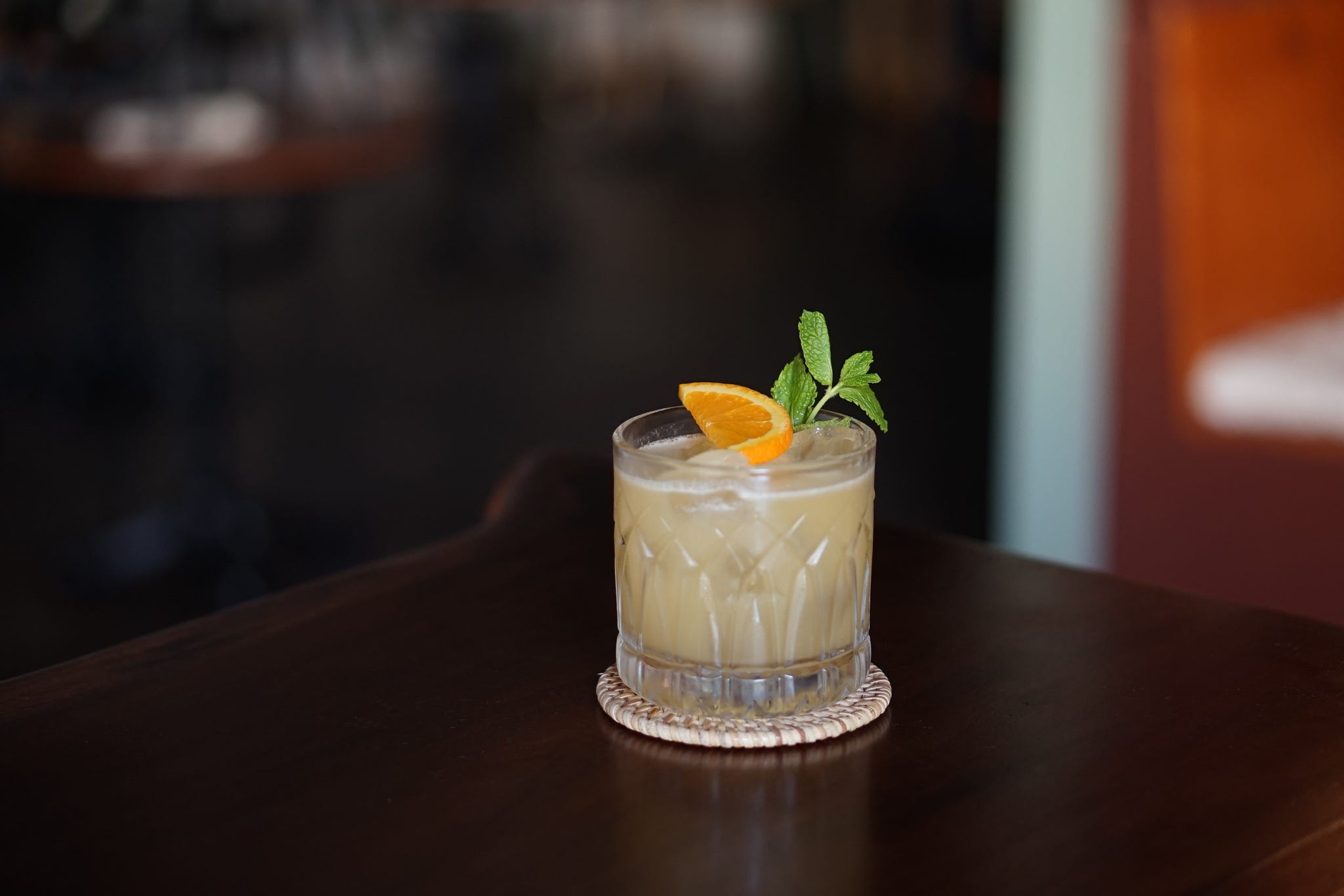 Add all ingredients to the shaker (if at home without tins; protein shaker works just as well). Strain over cubed Ice in a rocks glass. Garnish: Mint sprig and orange slice. If you want to impress: Dendrobium Orchids.
